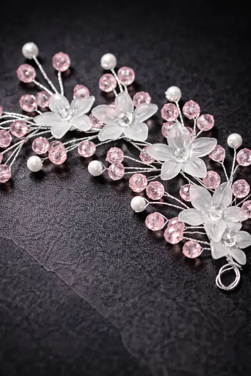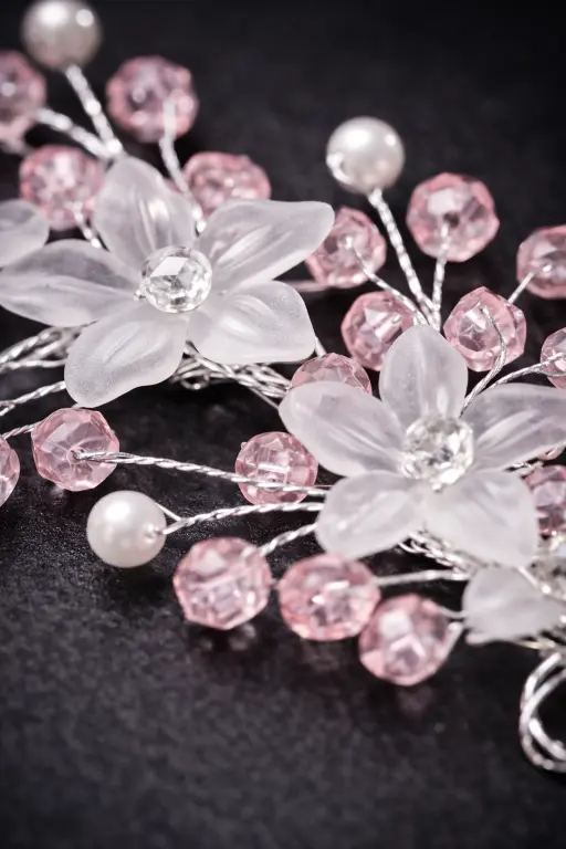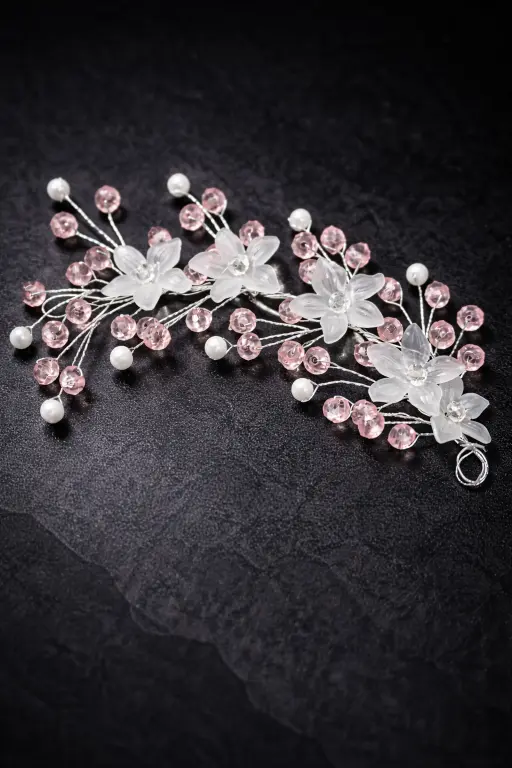 Enhance your hairstyle with this elegant blush floral hair vine, crafted to bring a soft, romantic charm to your look. Designed with delicate translucent flowers, pastel pink crystal beads, and pearl accents, this piece beautifully mimics a blooming floral vineโperfect for creating graceful bridal and festive hairstyles.