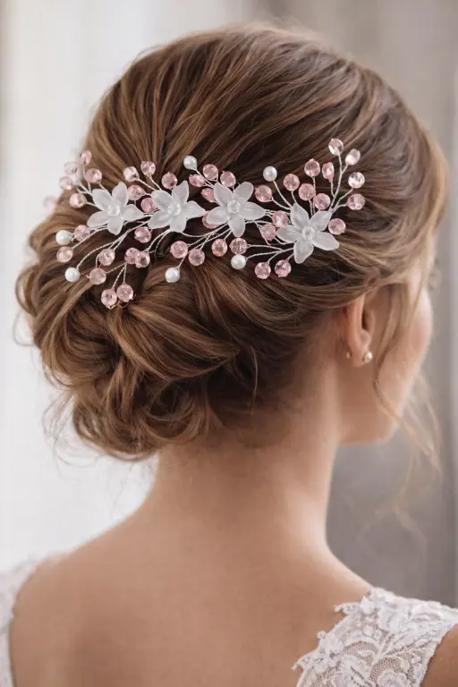 Its flexible wire base allows easy styling across buns, braids, or open hairstyles, ensuring a secure yet comfortable fit. Whether you’re a bride, bridesmaid, or attending a special occasion, this accessory adds a subtle sparkle and ethereal elegance to your overall look.