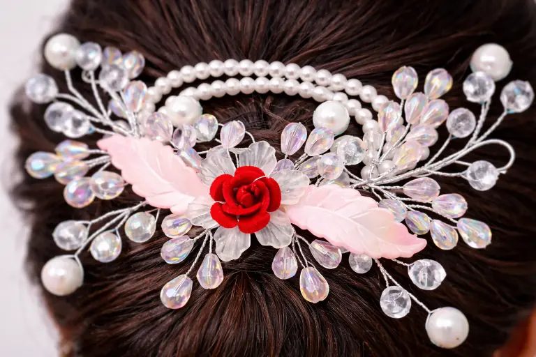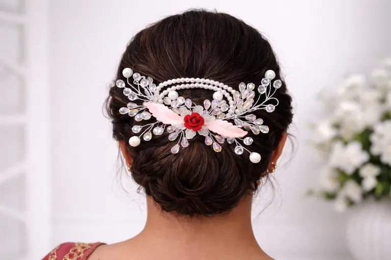 It sits beautifully on buns and tied hairstyles, making it a great choice for weddings, functions, or even a well-dressed evening. Lightweight and easy to place, it stays comfortable while giving your hair that finished, styled look.